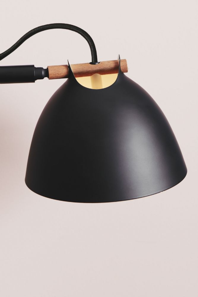 Århus væglampen fås udover den sorte der er vist her, også i farverne hvid og grå. Alle med den lækre detalje i form af træcylinderen i toppen der giver lampen sit særlige og stilfulde design. Træcylinderen er dog ikke blot en æstetisk detalje, men udgør også en justeringsmulighed for at dreje skærmen.Århus - en væglampe i dansk design