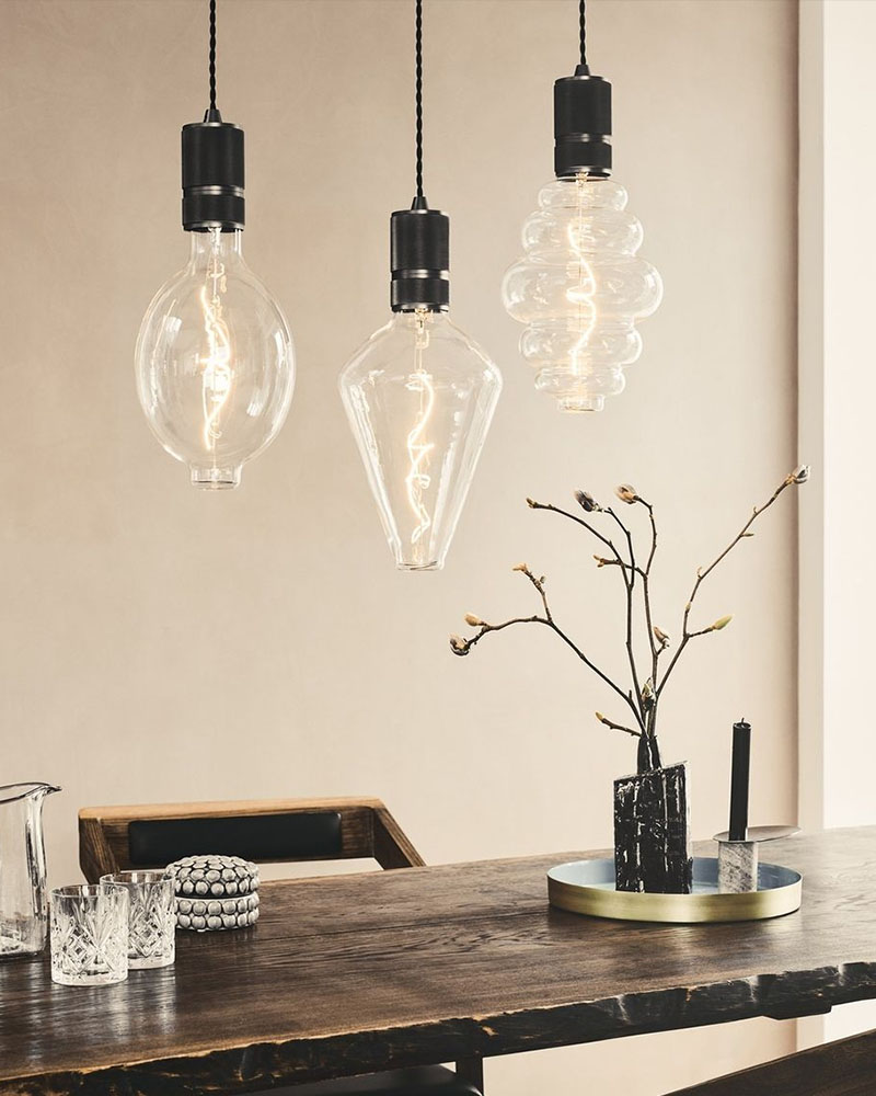 Du sætter dit eget præg på udtrykket, når du vælger kabel og lyskilde til din fatning – der er rigtig mange muligheder. Vælger du en lyskilde med lysdæmperfunktion, kan du let dæmpe lyset.