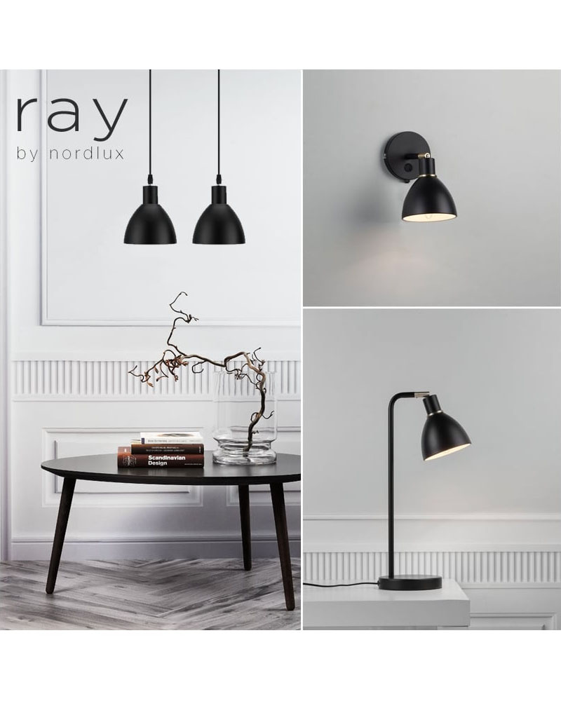 Ray serien fra Nordlux er en serie i et klassisk design med et moderne udtryk. Serien laves i hhv sort og opal/krom og fås også som pendel- og bord- og gulvlampe.Specifikationer: