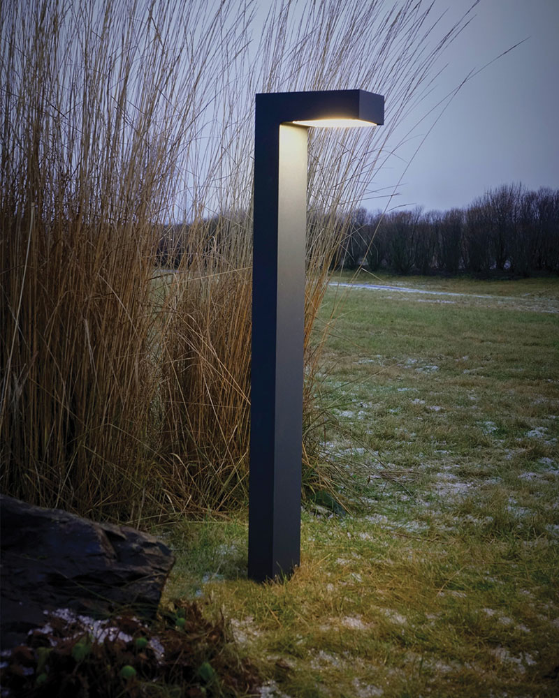 Denne version af Asker Mini Pullert er i en flot mat sort farve, der giver et diskret og neutralt udseende. Lampen fås også i farverne aluminium og mørk grafit og kommer desuden også i en større version på 55 centimeter i højden.