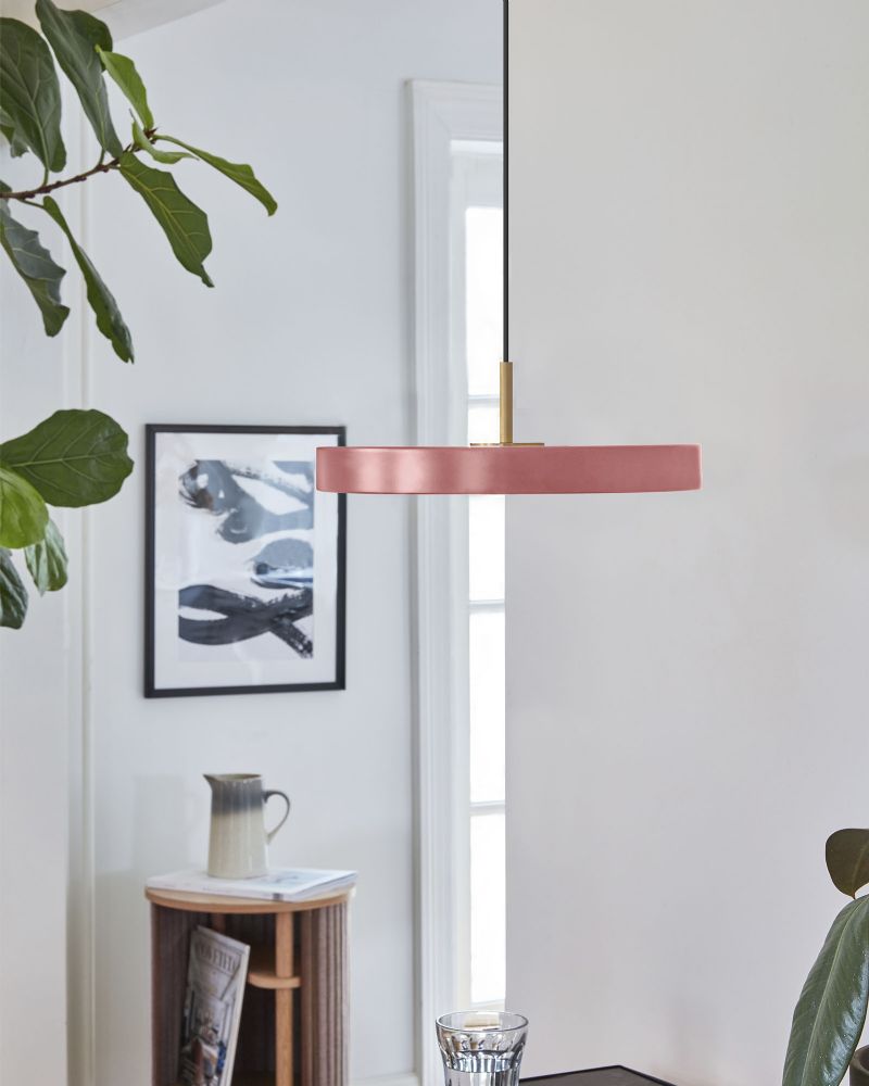 Denne fantastiske serie af lamper er designet af Søren Ravn Christensen fra det danske brand Umage. Umage har eksisteret siden 2008 under navnet Vita Copenhagen, men ændrede i 2018 navnet til Umage. Det nye navn signalerer deres værdier og deres omhu når det kommer til design og produktion - lige så vel som deres ansvar over for miljøet. Dette kommer bl.a. til udtryk i deres fokus på bæredygtigt design, samt begrænsning af indpakning og reduceret behov for transport. Lamperne leveres u-samlet, så æskerne har en minimal størrelse - alt sammen for at spare på både transport og materialer samt for at reducere CO2 udledningen.Umage Asteria LED pendel uden pære